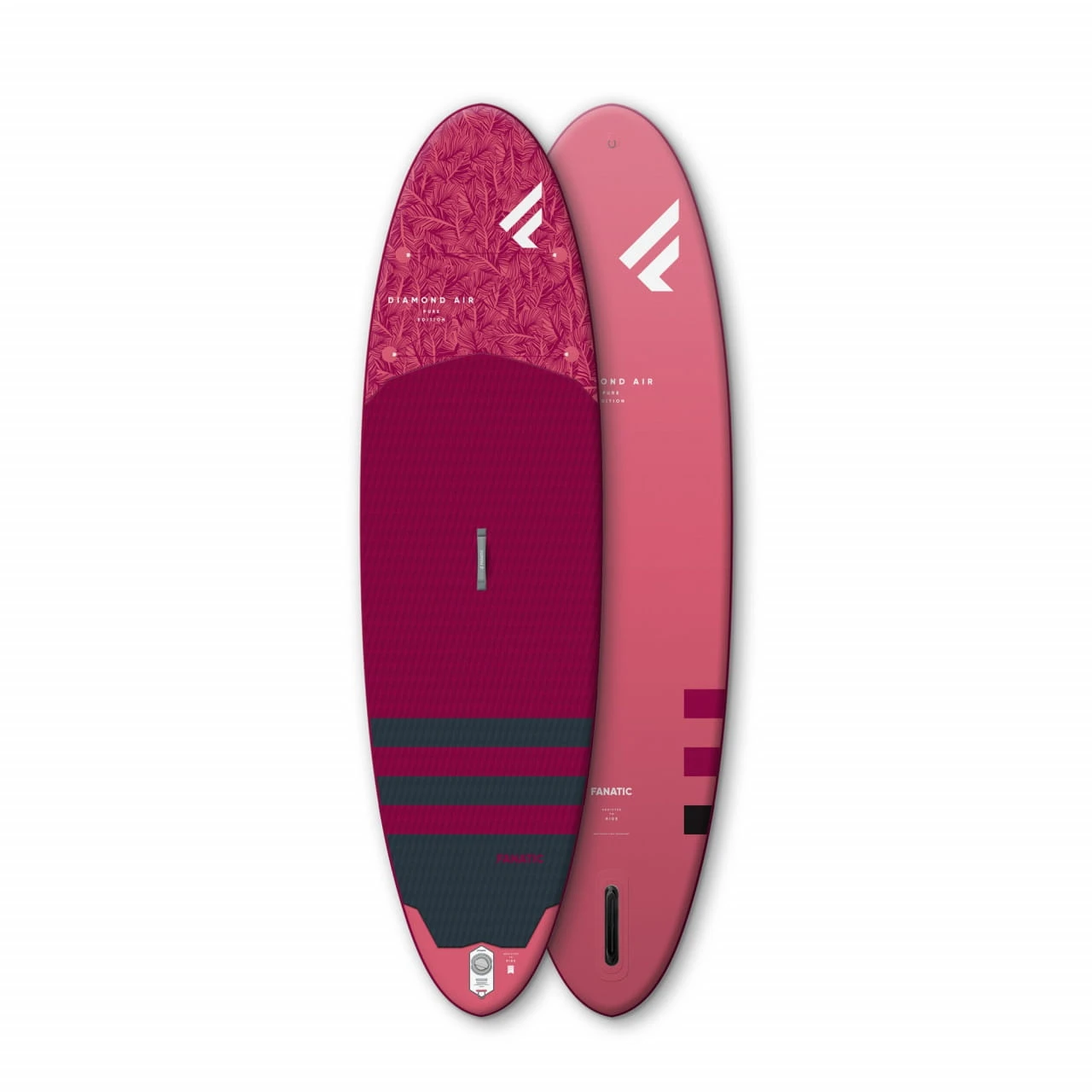 Das Diamond Air ist das Allround SUP für Damen. Das Diamond Air 9’8″ SUP ist ein Einsteiger und Allround Board für jede Menge Spaß in ruhigen Gewässern und in kleineren Wellen. Mit einer bauchigen Outline und runden Enden ist das Diamond Air ein wendiges und verspieltes SUP, das sich ideal am See und mit Freunden paddelt. In der femininen Ausführung überzeugt die Diamond Serie von Fanatic mit ansprechenden Farben und weniger dicken Boards, die ganz auf das geringere Gewicht der Riderin ausgelegt sind.