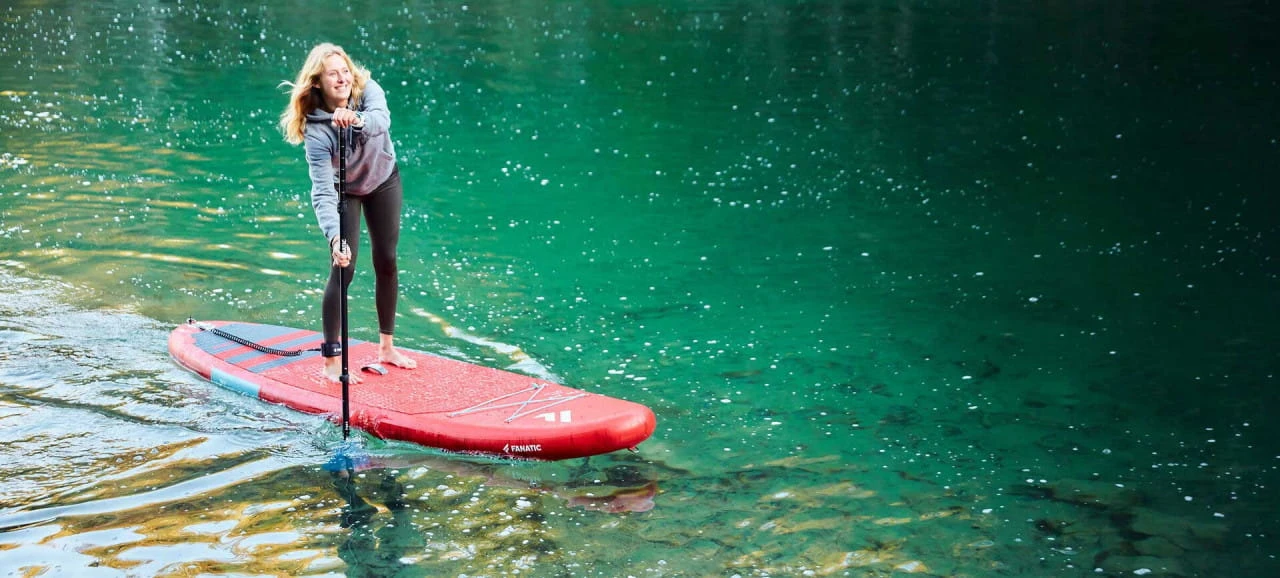 Das Fly Air SUP von Fanatic ist unsere Experten-Empfehlung für alle SUP-Neulinge und Reisende, die in fremden Städten und Landschaften nicht auf ihr SUP verzichten wollen. Das Fly Air in der günstigen Pure Bauweise ist ein ausgesprochen leichtes Board mit einer sehr guten Handhabung für alle Gelegenheits-SUPler.
