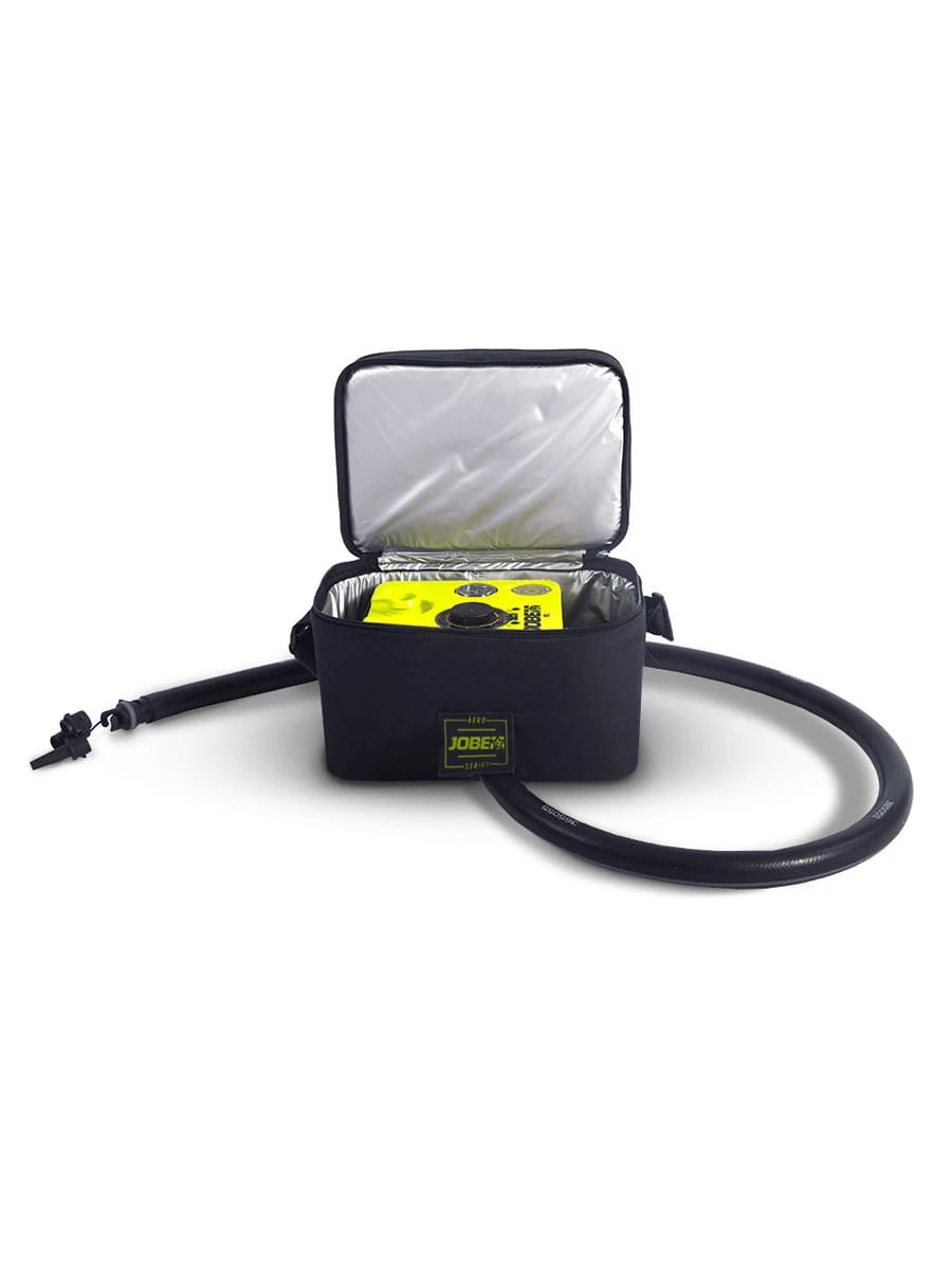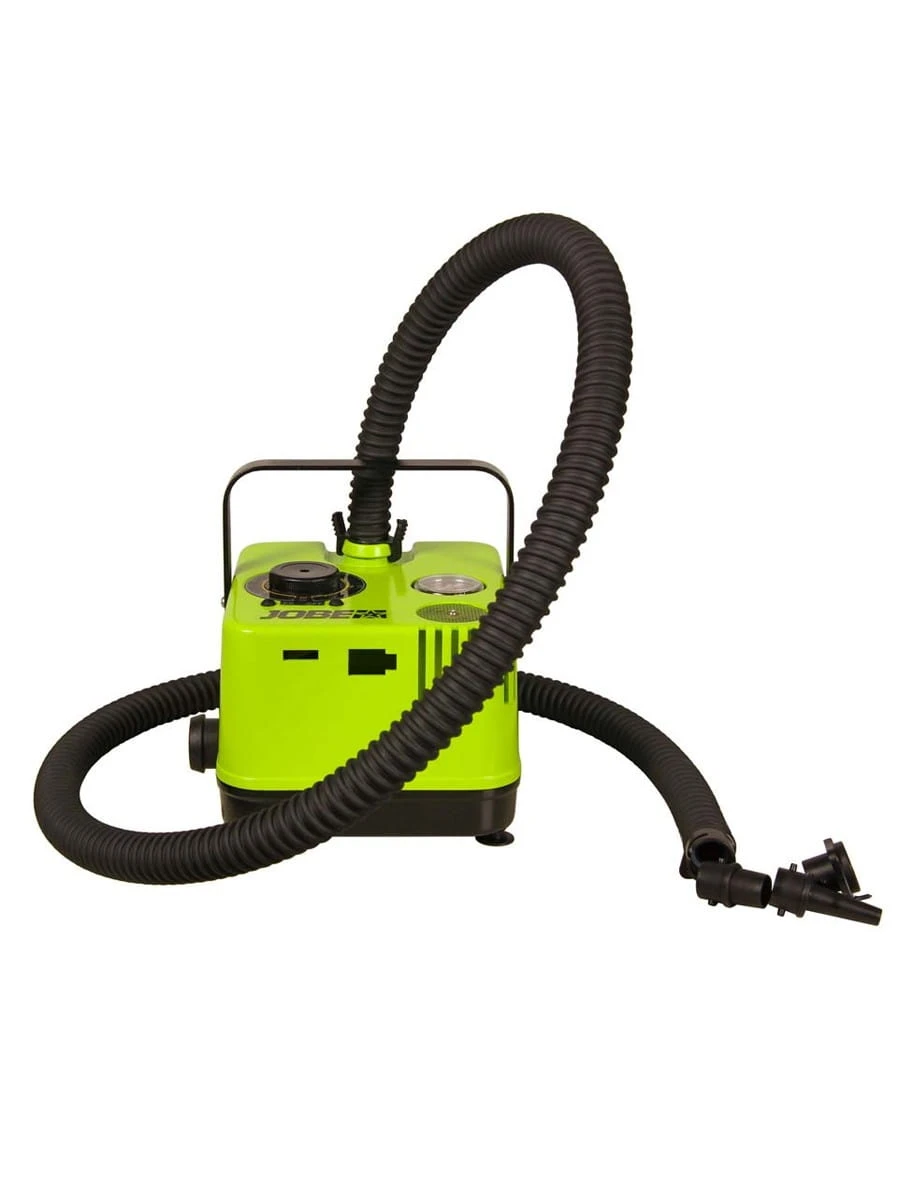 Kräfteraubendes Aufpumpen deines iSUPs findet mit dieser Pumpe ein Ende. Die elektrische Luftpumpe kommt mit einem Akku und ist unterwegs dein bester Freund, um mühelos aufzupumpen. Mit dazu erhältst du vier verschiedene Düsen, auf diese Weise findest du auch den richtigen Anschluss für dein Board. In der beigelegten Tasche lässt sich alles sicher verstauen und der Tragegriff an der Pumpe macht sie leicht umgänglich. Einmal eingeschaltet bringt sie dein Board auf ein Druck von bis zu 20 PSI. Du beschleunigst nicht nur das Aufpumpen, auch das Luftablassen spart mit dieser Pumpe Zeit. Bei voller Ladekapazität bläst du ungefähr zwei normale Bretter auf. Im Anschluss lädst du deine Pumpe mit 12 V oder 230 V. Spar dir Zeit und Kraft für das Paddeln mit der portable electric Luftpumpe von Jobe.