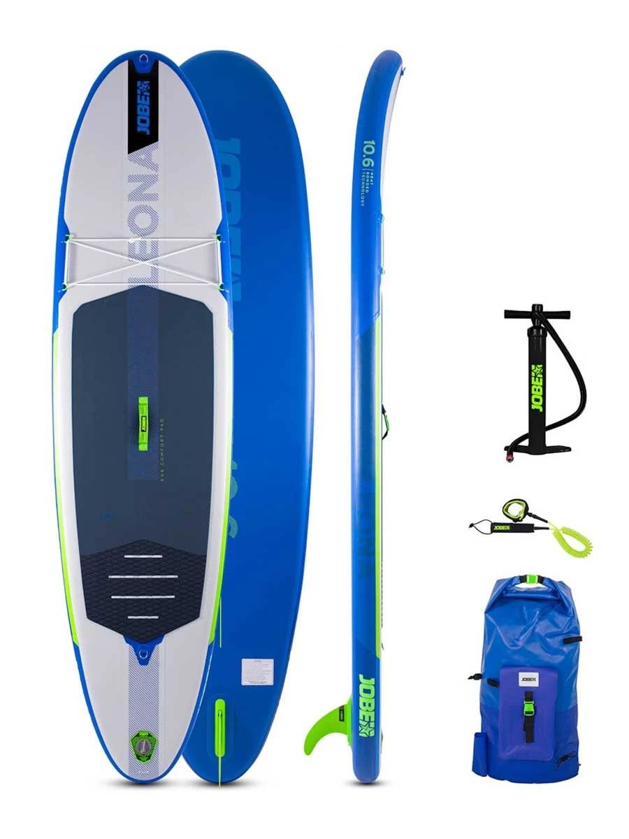 Das Leona kommt mit deutlich weniger Volumen als vergleichbare Boards – das spart Gewicht und ist vor allem für leichte Paddler eine enorme Kraftersparnis auf dem Wasser. Jobe stattet das Leona mit einem großzügigem, rutschfestem EVA Deckpad und Gepäcknetz aus.