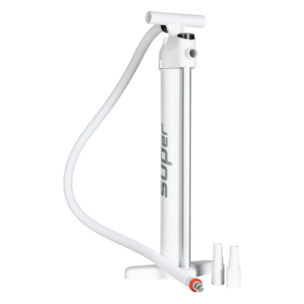 Die Turbo SUP Pumpe von STX ist eine hochwertige Pumpe, die zwischen Single- und Doppelhub wechselt. Die SUP Pumpe kommt mit integriertem Manometer und pumpt bis zu einem maximalen Druck von 20PSI. Für den platzsparenden Transport schraubst du bei der Turbo SUP Pumpe die Griffe ab.